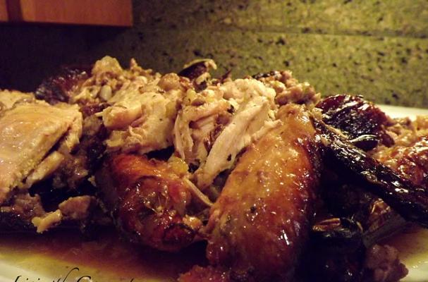 Loosen the skin on the roaster and stuff under the skin of the roaster.