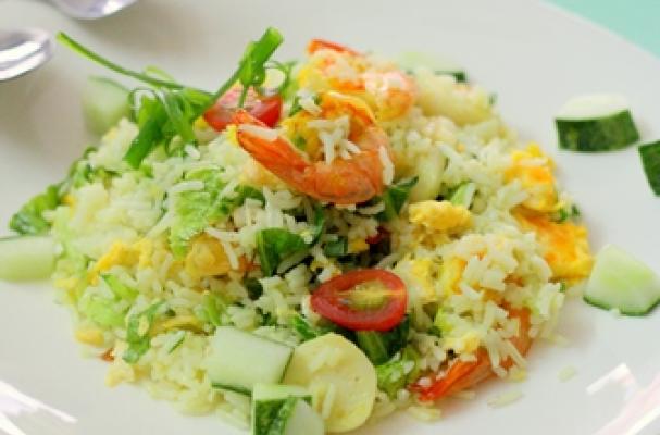Lastly, add spring onions, salad leaves and scrambled eggs.