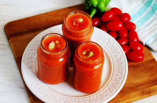 This is the best soup for summer! There is no cooking required! Just mix all the ingredients, chill it in your fridge and serve with ice cubes! The best option for summer parties – easy and quick to make and so refreshing!