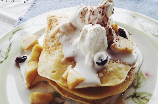 Plate crepe then apples, whipped cream, crepe, apples, whipped cream and keep going until you are happy!!