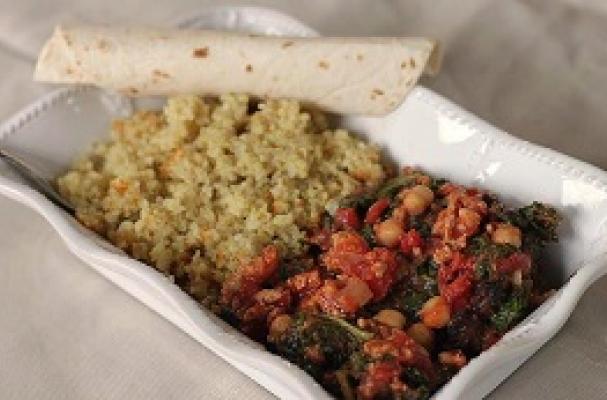 5.) During the last few minutes of cooking time squeeze in lemon juice and add in chick peas & raisins.