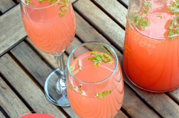 In a pitcher, pour out the guava juice and the sparkling wine.