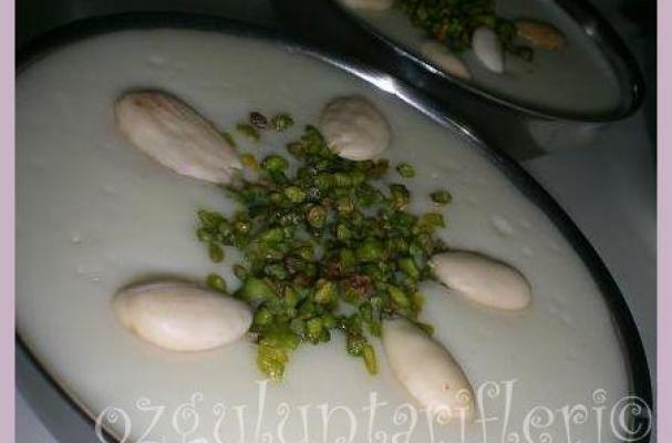 4.Vanilyayi ilave edip ocaktan indirin.Kaselere bosaltip uzerini bademve fistikla susleyin buzdolabinda sogutup servis edin.
