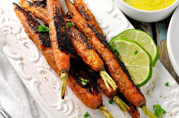 Place carrots on a platter, drizzle with yogurt mix and serve with lime wedges.
