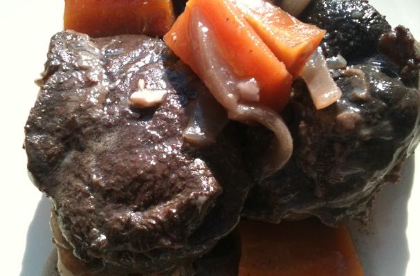 Ragoût De Joues De Boeuf Aux Carottes , Aux Cèpes Et Au Côtes Du Rhône