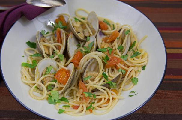 Spaghetti with clams and tomatoes