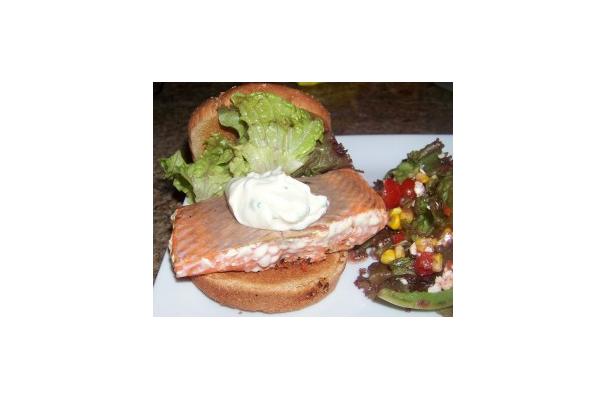 Fresh garlic and chives really add a fresh taste to the mayonnaise, and really give this salmon burger some kick.