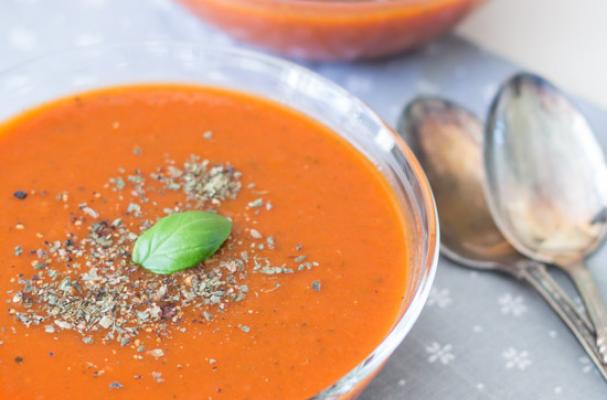 A simple, yet delicious and warming tomato soup. It only requires a few stable ingredients, 2 minutes of prep and 15 minutes on the stove.