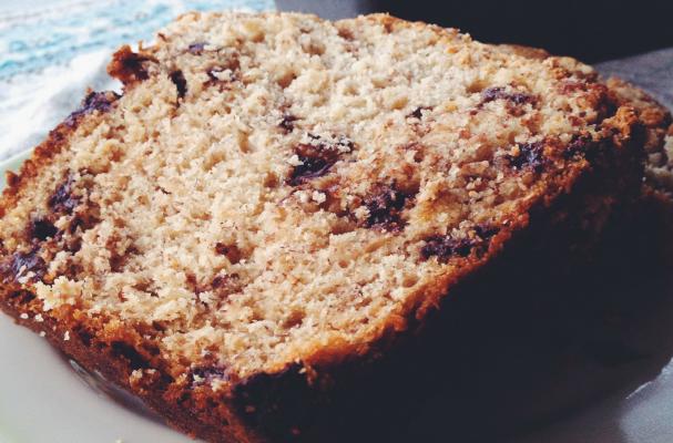 Stir in chocolate chips and pour batter into the prepared loaf pan.
