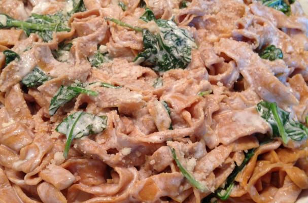 Homemade Butternut Squash Pasta in a Creamy Spinach Sauce