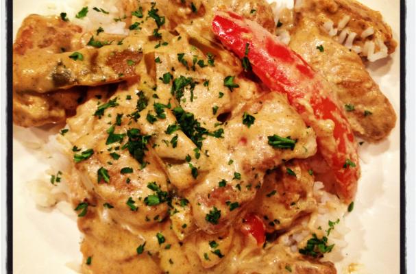 There are still plenty of cuisines that I have not yet played with in the kitchen, Cajun being one of them. I've been to a local cajun restaurant, Ragin Cajun in Belmar. Both the hubby and I found it was decent but nothing over the top special. So while on a trip to the grocery store I figured I'd pick up a few things and see what I could come up with. This cajun chicken with peppers and onions in a light cream sauce came out fantastic!!!! The hubby even made a point to say this is great and should be made often!