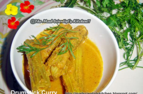 5. Pour over the drumstick curry. Cook till the drumsticks are done.