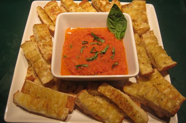 This is a simple, delicious, and healthy addition to any meal. Simply spread the delicious pureed tomato mixture on a piece of warm toasted bread and top with aromatic basil. Grab a napkin, close your eyes and fully savor the combination of flavorful ingredients which combine together to produce a heavenly slightly sweet flavor!