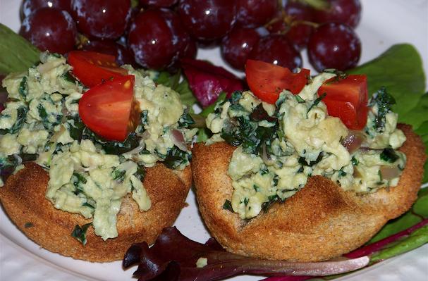 Preheat oven to 400. Cut crusts off bread, brush with 1 tbs melted butter, and bake 10 minutes until bread is lightly browned.
