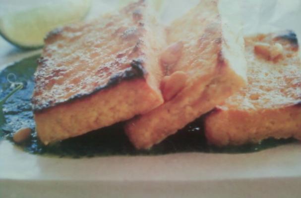 Broiled Tofu Over Cilantro Pesto