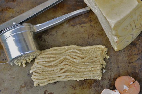 This recipe does require a passatelli press or potato ricer to push the dough through, making thin snakes of passatelli.