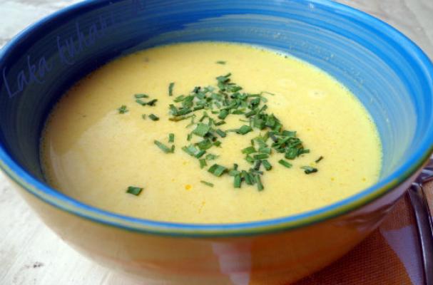 Serve with homemade croutons, sprinkle with fresh or dried chives.