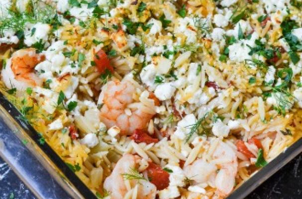 Juicy shrimp and tender orzo pasta, with fennel, tomatoes, fresh herbs and feta cheese.