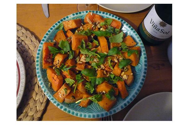 Roasted Butternut Squash With Burnt Aubergine and Pomegranate Molasses