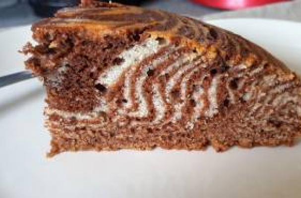 A rich moist Vanilla and Chocolate sponge coming together to resemble a zebras stripes