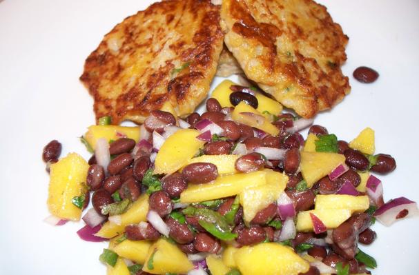 Brown Rice Plantain Pancakes With Black Bean Mango Salsa