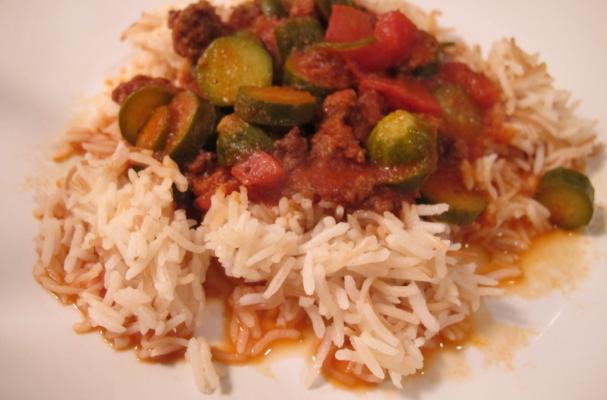 Once it is finished, serve with rice or pasta. And if you are eating it with rice, try having some plain non-fat yogurt on the side with it :).