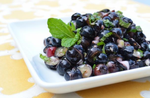 A savory blueberry salsa combined with spicy ginger, fresh mint or cilantro, aromatic shallots and perfect over grilled fish or poultry. A lovely summer dish.
