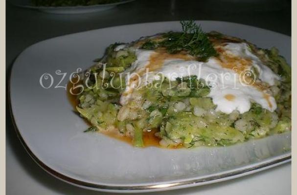 Daha sonra pirinc ve su ilave edin.Suyunu tamamen cekinceye kadar pisirin.Sogumaya birakin.