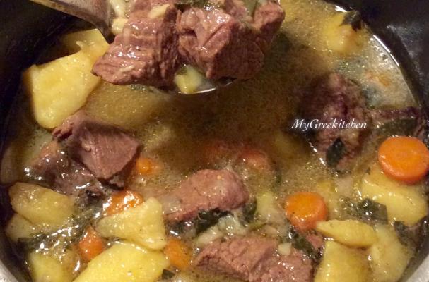 Vrasto Soup. Boiled Beef with Vegetables and Egg-Lemon Soup