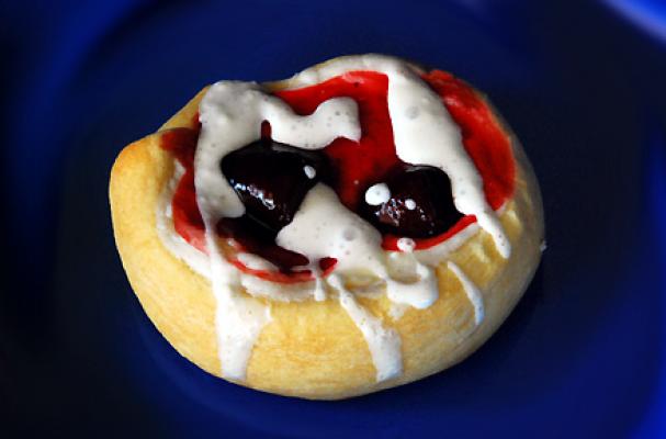 In a mixing bowl add the cream cheese, powder sugar and milk. Mix until fully, blended and smooth. Place about 1/2 tbs. of cheese filling into the center of the Danish, then top with about 1/2 tbs. of strawberry filling. Bake these for about 15-18 minutes or until golden brown. Once cool you can serve them plain, drizzle with a powder sugar glaze, or add a little more milk to the cheese filling to thin it out and drizzle across the danish.