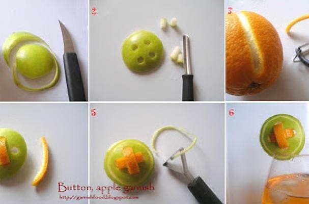 How to make an edibe garnish from an apple to decorate cocktails, drinks and desserts.