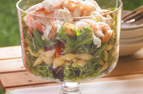 Layered Caesar, Shrimp & Pasta Salad