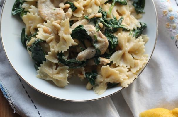 Creamy Chicken, Spinach and Pine Nut Farfalle