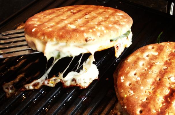 Place onto a heated panini press and cook until the bread is nice and crisp and the cheese has melted.