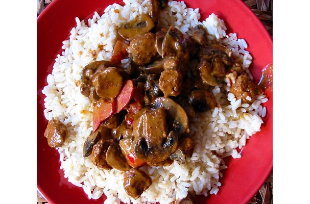Saute chiles in vegetable oil in large pot. Meanwhile, boil the rice and or wheat pilaf in an equal amount of water. Add all canned ingredients to the chiles, draining liquid from all except the tomatoes. Stir and simmer while rice continues to boil. When it is ready, add it to the vegetable mixture. Stir and add chili powder and pepper. Simmer a few more minutes, until most of the liquid is gone. Great served with warm bread and butter.