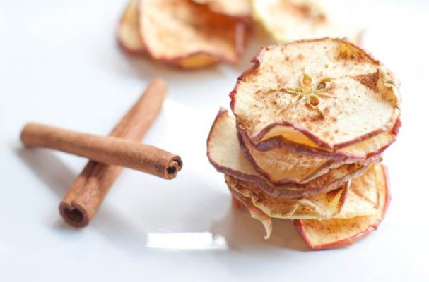 Dehydrated apple slices seasoned with Pumpkin Pie Spice = the perfect Fall snack!