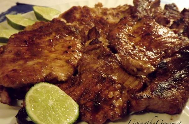 Place the pork on a platter and squeeze a little lime and a few dashes of salt over the pork.