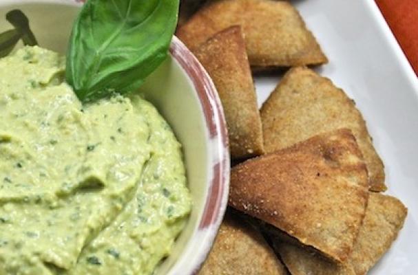 Basil Hummus with Homemade Pita Chips