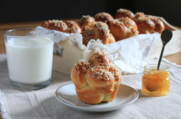 Buttery bundles of brioche topped with honey and toasted coconut.