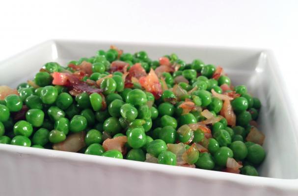 Peas with Pancetta & Shallot is easy to make but really delicious with the sweetness of the peas, the salty crisp pancetta and the caramelized shallot.