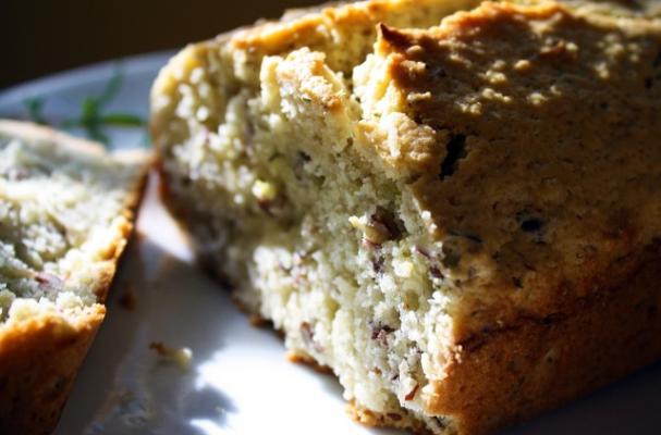 In a bowl, stir the flour, sugar, walnuts, baking powder, rosemary, salt and lemon zest.