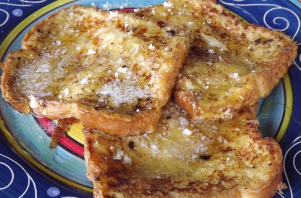 Place the dipped bread on the griddle and let and grill on each side for three to four minutes, until a nice golden color is reached.