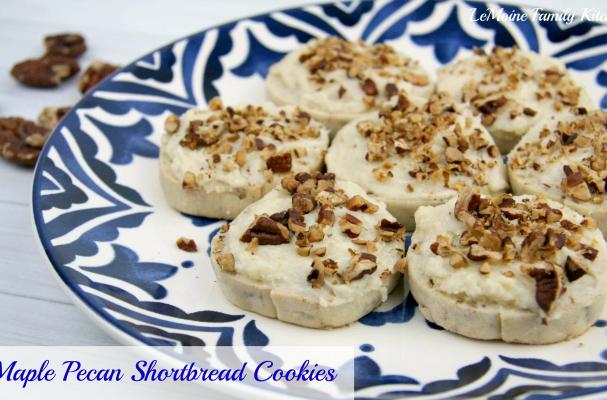 Maple Pecan Shortbread Cookies are just out of this world! I love the crisp exterior and chewier interior of these and that you can really do so many varieties of flavors with them! The plain shortbread is a great base for so many cookie ideas! The toasted pecans and pure maple syrup make these cookies so incredible!!! Like I said, the aromas…. just wow! If the toasted pecans and maple syrup in the cookie weren’t enough, well I made a simple maple buttercream {butter, powdered sugar and maple syrup} to go on top and then finished them off with more toasted pecans!