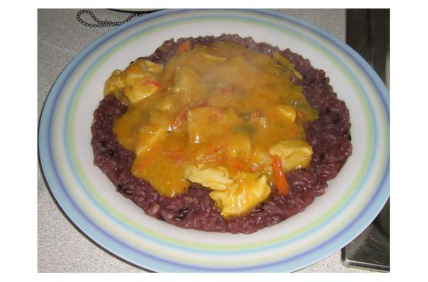 Cut chicken breasts into 3 x 1/2-inch strips; set aside. In a 12-inch skillet, over medium heat, in hot salad oil, cook green pepper and onion until tender, stirring occasionally. Stir in curry powder and salt. Cook 1 minute. Add chicken to mixture in skillet. Over high heat, cook until chicken just loses its pink color, about 3 to 5 minutes, stirring frequently. Reduce heat to medium. Stir in cream; cook until mixture