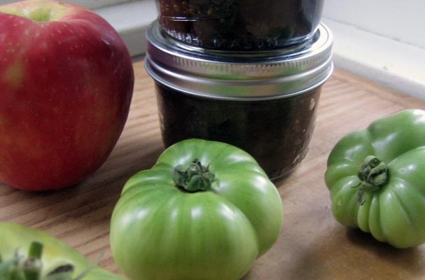 In a large pot, mix together the rest of the ingredients and add the green tomatoes. Stir to combine. Bring the mixture to a boil and then lower the heat and simmer for 2 hours, stirring occasionally. I covered my pot for about 1 1/2 hours, then uncovered and mashed the tomatoes and apples a bit. I kept the pot uncovered to thicken more for the last half hour. Watch to be sure it doesn’t begin to stick or burn on the bottom. Lower the heat if necessary.