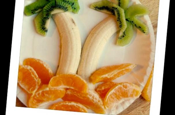 assemble the kiwis bananas and oranges into little palm trees so cute!