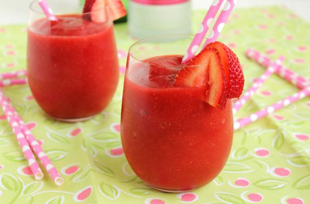 Place all ingredients into the pitcher of a blender and puree until the mixture is smooth. Pour into two glasses and serve immediately.