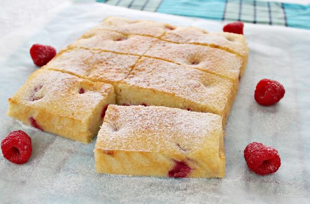 Gently fold in the raspberries into the creamed mixture, mix well and pour into the prepared cake pan. Bake at preheated oven 180C for about 30 minutes or when skewer inserted into cake and comes out clean.