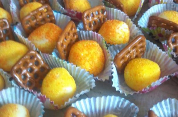 I found this recipe on Pinterest but made a few adjustments thanks to my friend Kathy and served them at a chocolate festival here in Martinsburg, West Virginia. A great variation is to use orange in place of lemon. We added a pretzel to each paper candy holder to balance out the sugary taste. You can also substitute lemon or orange liqueur for the juice to add an extra special flavor.
