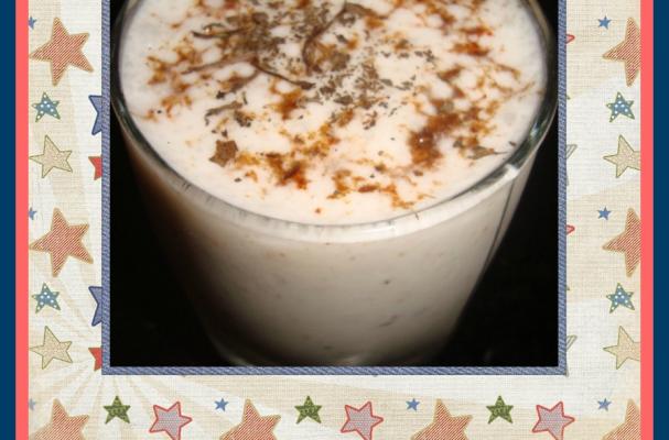 LEAVES. CHURN WELL. ALSO ADD FEW CUBES OF ICE, IF WISH TO SERVE CHILLED.